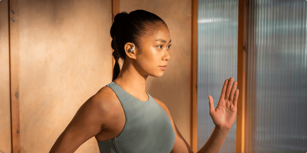 OpenFit features IP54 water resistance and is designed with a double-layer waterproof steel mesh and gauze for additional protection and enhanced sound performance.7 During your sweatiest of workout sessions, keep enjoying your music or audiobook worry-free.